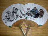 毎年、妖怪図の団扇が作られ、販売されています。左は数年前に買ったもの。右は今回ついまた購入してしまった『酒宴妖怪図』です。 |