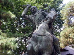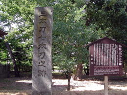 う「三太刀七太刀乃跡」の碑が、両雄の