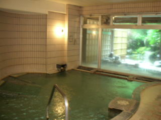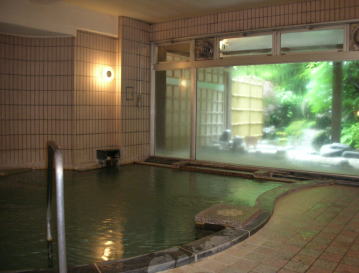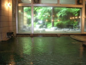 | 窓が大きく開放的で、浴場中に塩化物温泉特有の香りが充満しています。 |