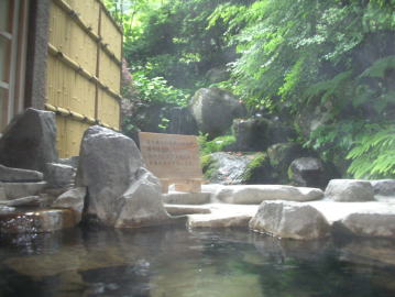 | 肌触りの柔かな湯で、草津温泉の仕上げの湯としてもってこいの温泉。泉質表示を見ると源泉名は「塩壺、星野共同井戸」とあります。ホテルの方に聞いてみると隣の星野温泉と同じ源泉を使用しているそうです。おそらく昔は泉質も異なる別の温泉だったのでしょうが、湯量確保のために共同で掘削したのでしょう。ちなみに日帰り入浴施設のトンボの湯は他の源泉を混合してあれだけの湯量を保っているようです。 |