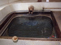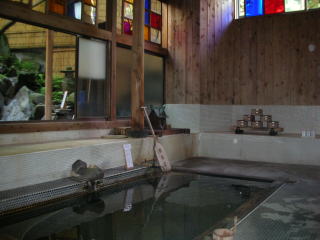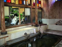 | 浴場は2か所。内湯+露天風呂の浴場と内湯のみの浴場の2か所があって、夜7時に男女が入れ替わります。すべての湯舟に自家源泉がかけ流されています。 |