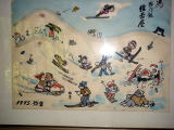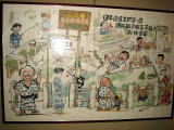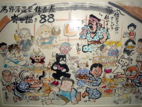 | 住吉屋は漫画『のらくろ』作者、田河水泡が定宿にしていたそうで、本館から別館に通じる廊下には、のらくろの他、同宿した漫画家たちの寄せ書き(寄せ漫画?)がたくさん飾られています。