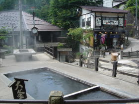 | 住吉屋は野沢温泉のシンボル的存在、麻釜の目の前にあります。 |