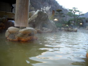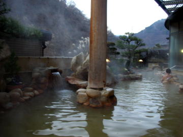 | 大きな露天風呂をはじめ、内湯、歩行湯(足裏のつぼを刺激する石が敷き詰められている)、ジェットバス、バイブラバスなど多様な浴槽を楽しめます。 |