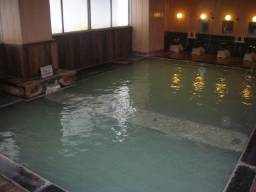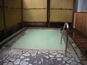 | 写真ではうまく表現できませんでしたが、実際は乳緑色・エメラルドグリーンの美しい湯です。硫黄香が漂って実に気持ちいい。 |