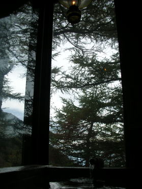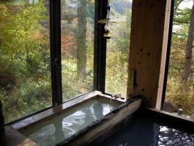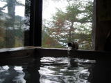 高峰温泉は登山やハイキング帰りの人で日帰り入浴も賑わいます。時間によっては湯舟に入れない程混雑することもあります(今回訪れたときも最初はそうでした)が、上の写真をご覧いただいておわかりのように潮が引いたようにがらんとする時もあります。混んでるなと思ったら休憩所でコーヒーでも飲みながら待つことをおすすめします。 |
