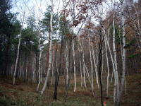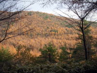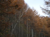 | ダート道といっても道幅はそこそこ広いのですが、かなり荒れている部分もあるので、十分気を付けて走行してください。落葉松や白樺の林がきれいです。 |