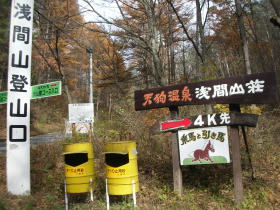 小諸の街から高峰高原に至るチェリーパークラインを上っていくと、やがて浅間山登山口とその隣に天狗温泉浅間山荘の看板があります。
