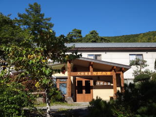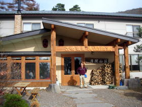 ほどなく天狗温泉浅間山荘に到着。土曜日の昼時でしたが、広い駐車場に車が沢山泊まっていてちょっとびっくり(温泉が混んでいるのではと心配)。 |