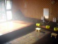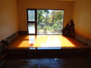 | フロントで入浴料金を払って浴場へ。食堂は乗馬や登山客で賑わっていましたが、浴場のほうは男湯も女湯も貸切り状態。ラッキーです。 |