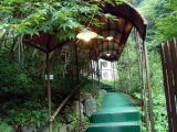 露天風呂は宿の建物から外へ出て屋根のかかった階段を上ったところにあります。