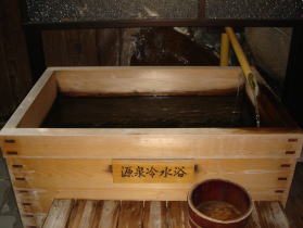 | 源泉そのままの浴槽もあります。湧出時の泉温が29.9℃なのでここに来るまでにさらに温度は下がっており、まさに冷水浴。 |
