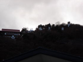 | すぐ裏手には戸倉上山田温泉のシンボル、城山が聳えています。戦国時代、村上義清配下の山田氏の荒砥城がありました。「戸倉上山田」のネオンサインは私が子供の頃からあるのですから、かれこれ50年以上存在することになります。 |