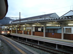 「駅前温泉」というより「駅中温泉」と言ったがいいくらい駅に近い。下の2枚はいずれも楓の湯館内から撮った写真。窓の外は駅のホームです。 |