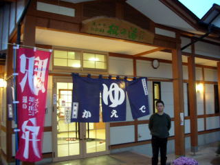 | ホームが見える休憩所もあり、志賀高原観光やスキーの帰り、電車を待つ間のひと風呂に、あるいは湯田中渋温泉郷めぐりの仕上げの湯に、ぴったりの入浴施設。我々が訪れた夕暮れ時も、風呂から上がって休憩所でのんびり電車を待つ外国人夫婦がいました。 |
