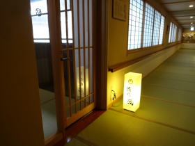 清潔感あふれるきれいな館内。床はエレベーターの中まで一面畳敷きで気持ちいい。 |