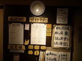 | 初めに書いたように自在館には3つの貸切風呂があってフロント脇にある予約表に名前を記入して利用します。 |