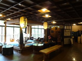 | 日帰り入浴料は1,720円(1,500円+税、タオル付、レンタルバスタオル、休憩室利用可)。私のような2時間程で帰らなければならない遠方からの立ち寄り客には高い料金ですが、10:30〜17:00の間休憩室で仮眠しながら貸切風呂を含めて何度でも入浴し、ラウンジの飲み物も自由に利用できるというシステムをフル活用すれば妥当な料金設定だと思います。 |