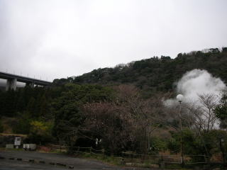 目の前に大分自動車道のアーチ橋(別府明礬橋)が見えます。 |