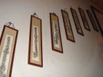 無人のミュージアムで入口の箱に維持のため100円を入れます。6畳一間と階段の壁に山頭火にちなんだ書などが