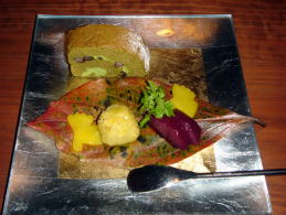 山女魚紅葉煮、石垣豆腐、栗チーズ、