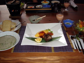 | 花あかりの食事は、大分県産の食材にこだわった創作料理・・・楽しみです。 |