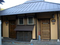 | 露天風呂の浴舎は宿泊棟の一番奥にあります。 |