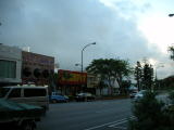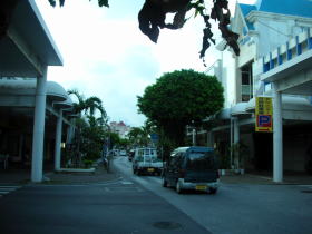 | 英語と日本語が入り混じったカラフルな大型看板の街並み。やはり「Yナンバー」の車が多い。 |