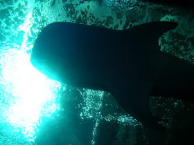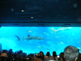 | 一番人気はやはりジンベイザメ。巨大な水槽の中を全長8.5mのジンベイザメがのんびり泳ぐ姿は癒される。 |
