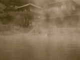 | 家族風呂が風紀を乱すとか妙な話が出てきたところで、混浴について書いてみようと思う。 秘湯ブームとやらで、今までは年配者と温泉好きのおやじ(含自分)のたまり場だった山間 の温泉場に若者たちの姿が目立つようになった。結構なことである。二十歳そこそこのアベッ クが古宿のきしむ廊下を浴衣姿で手をつないで歩く姿は微笑ましいものだ。しかしである。もう 5年ほど前になるが、世にもおぞましい光景を目にしてしまった。 |