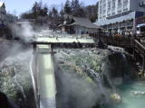 | 13の無料共同浴場を持つ野沢温泉も、外湯めぐりが楽しい温泉地。スキーリゾートでもある野沢温泉は土産物屋も多く、温泉街散策も楽しいが、行く先々で目にするのが岡本太郎デザインの「湯」のロゴだ。岡本太郎は生前幾度も野沢温泉村を訪れ、名誉村民第一号でもある。村名に「温泉」を冠しているだけあって、まさしく温泉三昧できる村だ。 |