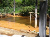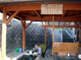 | 共同浴場の脇に洗い場がある。洗濯料1回50円、種籾浸湯料1ヶ100円、漬菜洗料1回300円、洗車料1回200円。ちょうど山で採ってきたキノコを洗っている地元の方がいた。ぬる湯なので何を洗うにもちょうどいいのだそうだ。浴場の湯舟には先客が二人。気持ちよさそうに眠っていた。 |