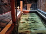 | 戦国時代、甲斐の名将・武田信玄が自身や兵士の戦傷を癒したという「信玄の隠し湯」のひとつだ。湯舟の底は板敷きになっていて、隙間から30℃ほどの源泉が湯舟の底からふつふつと自然湧出している。目を閉じてぬる湯に浸かっているとうっかり眠ってしまいそうだ。 |