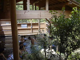 埼玉県一の湧出量を誇る。PH9.5のアルカリ性の泉水は糖尿病、アトピー、白内障にも効くとして、飲料水としても販売されている。 |