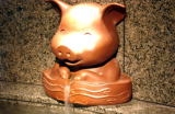 | 豚さんの置き土産に感謝して建立された「源泉地の母子豚像」 |