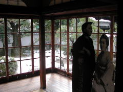 | ガラス戸からは小泉八雲がこよなく愛した日本庭園が見えます。 |