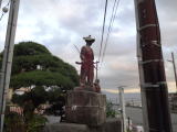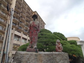 | 一柳閣の駐車場の手前に熱川温泉の発見者、太田道灌の像があります。温泉街は道幅が狭く、一柳閣に行くには公式サイトの道案内に従ってください。その際、太田道灌像が目印になります。 |