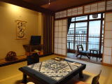 部屋の窓からは今まさに海に注がんとする濁川(宿の方によると今は「熱川」とも言うそうです)を見下ろせます。対岸の建物もそれなりの雰囲気ならもっと温泉情緒がアップするのですが・・・。