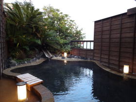 自家源泉かけ流し、鮮度抜群の温泉が素晴らしい。無料貸切り風呂がそれぞれ個性的で楽しい。館内も部屋もきれい。料理にも満足・・・これで1,1500円(税抜)は安い。熱川一柳閣、いい宿でした。 |
