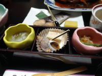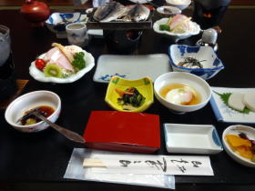| 清く正しい旅館の朝食という料理が並びました。朝食の方はちょうどよい量でした。 |