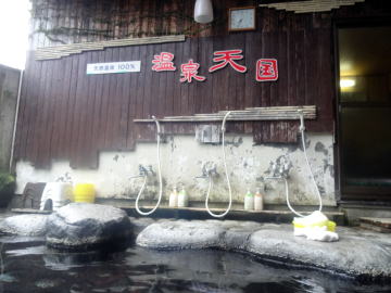 我々の他にほぼ同年代と思われる入浴客がいて、「熱い。熱い」と言いながら水をじゃばじゃば入れていました。そこまで熱いわけでもなく、せっかくの源泉100%が台無し。ああいうマナーはよくありません。 |