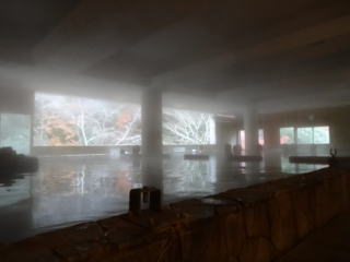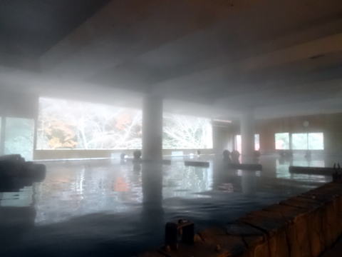 | 浴場に入って思わず息をのみました。コンクリート打ちっ放しの巨大な空間にこれまた巨大な浴槽が横たわっています。 |