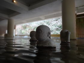 | 何体あったでしょうか。湯舟にはお地蔵さん。一種独特な雰囲気を醸し出しています。 |