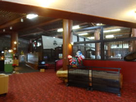 やけに広いフロント。宿泊施設や食事処はありませんが、休憩スペースは充実しています。食べ物の持ち込みもOKなようです。 |