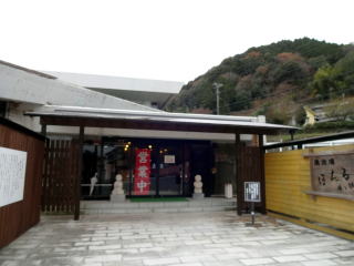| 修善寺方面から国道136号線を下田方面へ南下。出口交差点を土肥方面へ右折。緩やかな坂道を上っていくと船原地区に入り、程なく左手に関所のような門が見えてきます。「湯治場ほてる」の大きな看板もあって、見失うことはないでしょう。 |