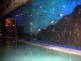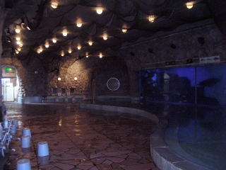 テレビで見たことがある浴場なので何となくは知っていましたが、実物を見てやはり「おっ」と声が出てしまいました。「温泉に水族館がある」、否、「水族館に温泉がある」といった雰囲気です。