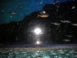 | 水槽の中には右のような魚がいるようです。大きなウミガメも2匹いました。 |
