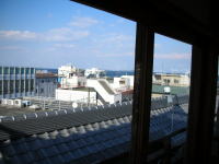 | 伊東温泉のシンボル的な存在でもある望楼(左の写真の青銅色の屋根)に上ることもできます。わずかに海も見えますが、建築当時は周りに高いビルもなく、天城山も見渡せたそうです。 |