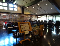 | 館内には約6000冊という膨大な量のマンガ本を持つ広々とした休憩所があります。畳広間の他、マッサージチェアもずらりと並んでいます。 |