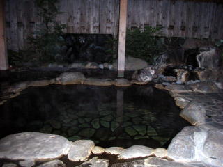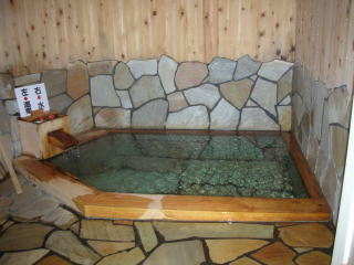 | お湯がじゃんじゃんかけ流されていて実に気持ちいい。上の檜風呂も同じですが、空いていれば24時間いつでも入ることができます。 |